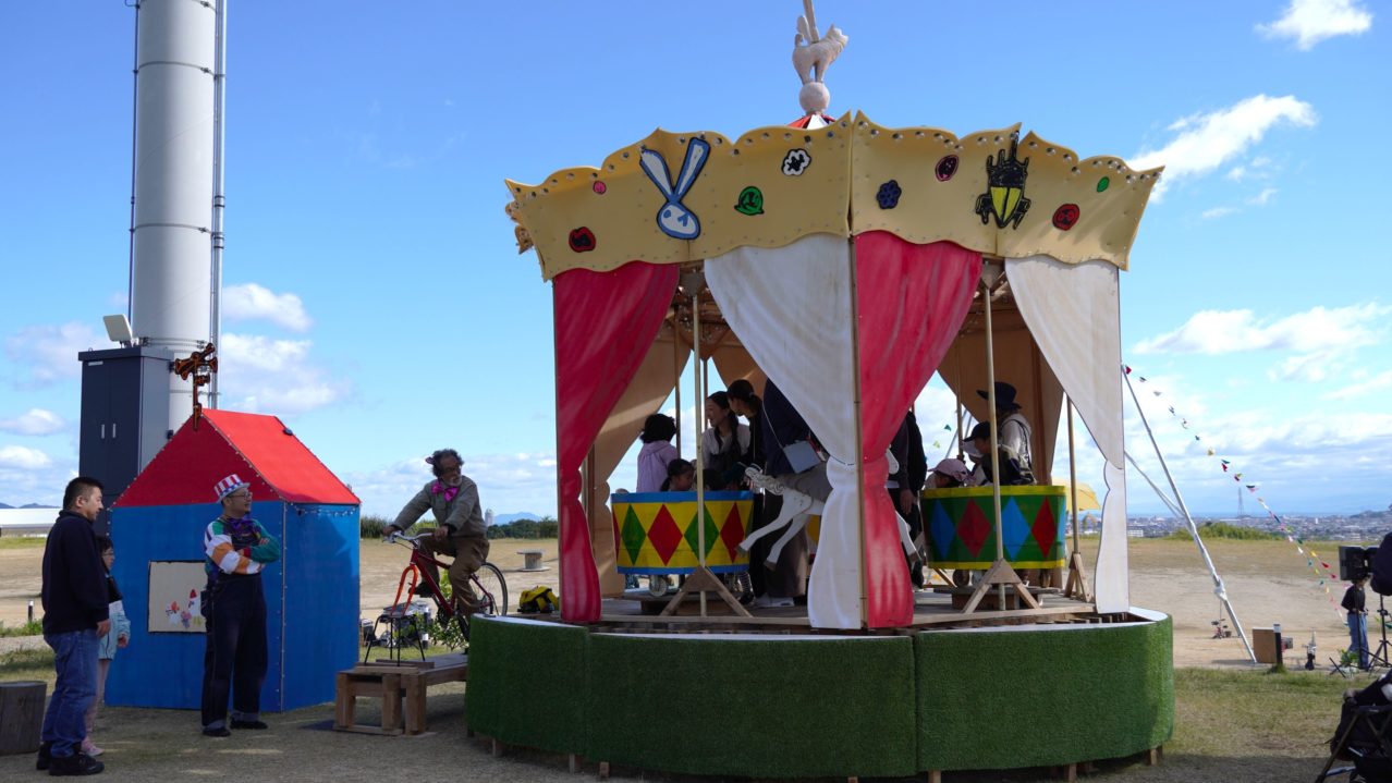 たとえば、自転車を動力にした人力メリーゴーランド《Tub go round !》という作品があります。今治でも、サーカスパレードのサーカス小屋として登場した作品です。