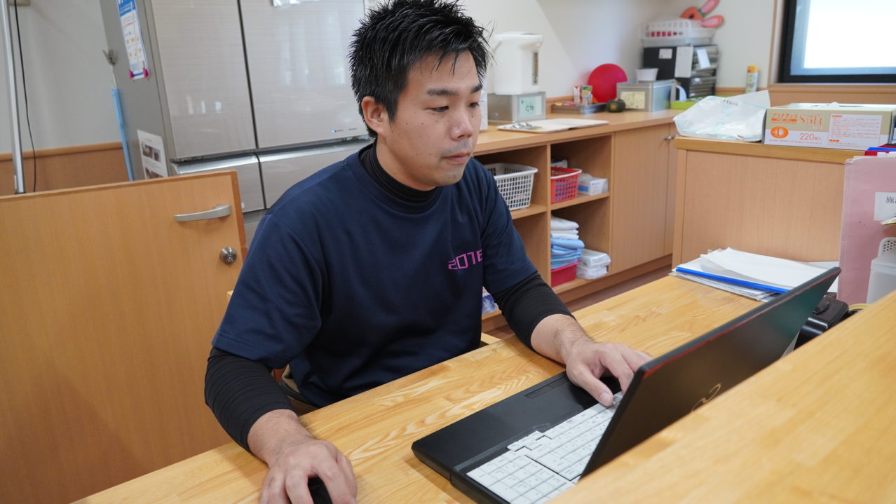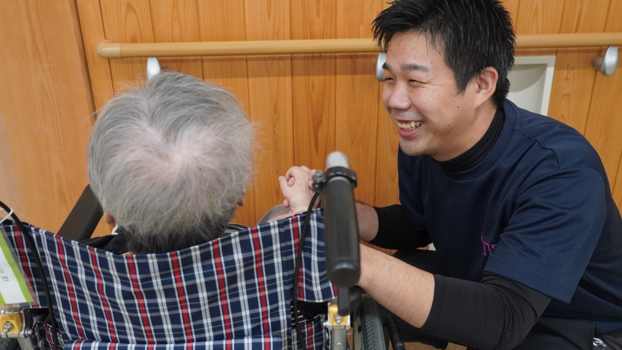 現在は、地域密着型特別養護老人ホーム「ほのか」の職員として、食事、排泄、入浴の介助など、入居者の日常を24時間支えています。人手不足や介助の重労働といった現場のシビアな現実に直面しながらも、彼が最も大切にしているのは、意外にも「技術」の先にある『笑顔』と『空気感』だと言います。