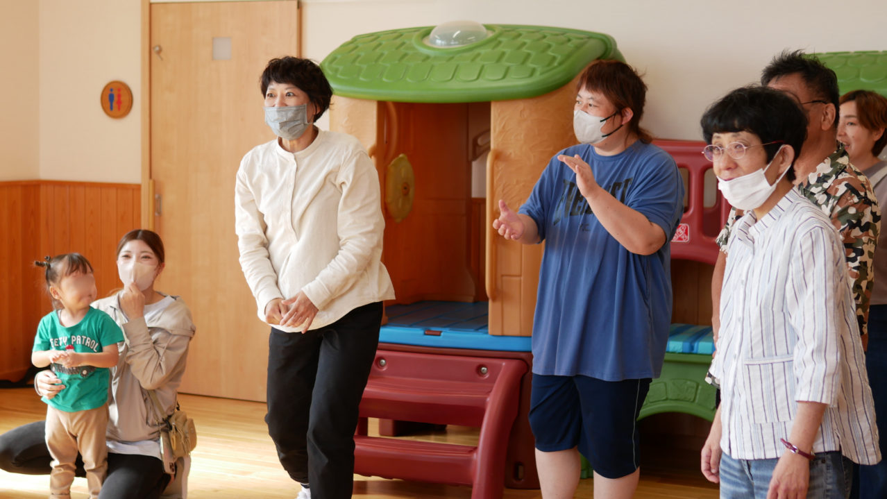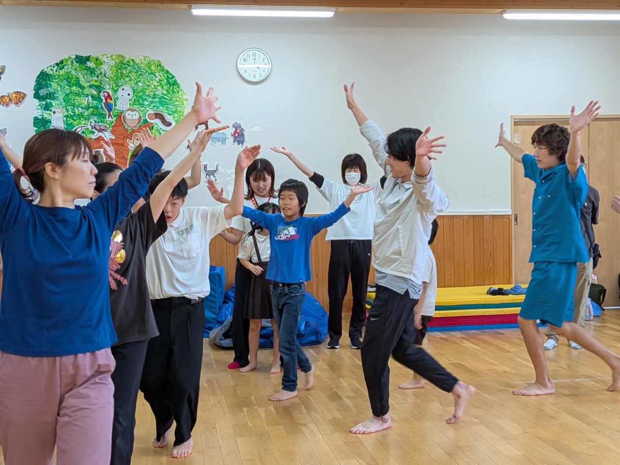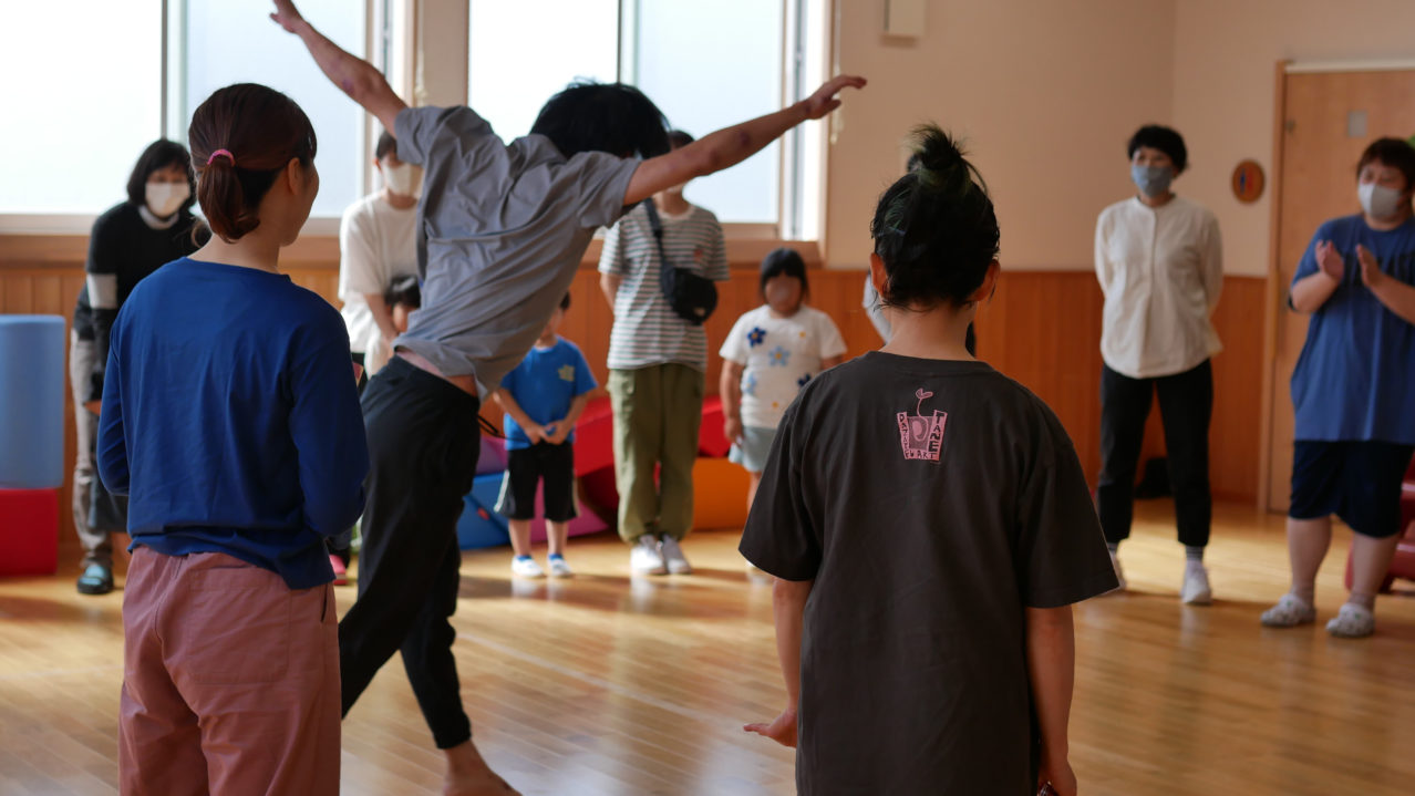 子どもも大人も自然に混ざり合い、決められたリズムや振付に沿いながら、ある人は即興でアレンジして踊ります。きっちり動く人と自由に表現する人が混ざり合い、思いがけない化学反応が起こるのです。