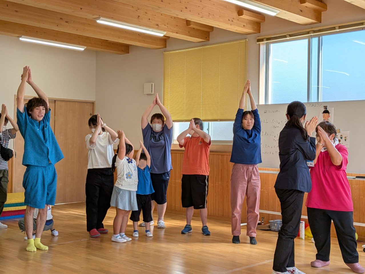講師の合図で、手拍子や足踏みが重なり合い、まるで音の塔が立ち上がるかのよう。笑い声も、息づかいも、パフォーマンスの一部になっていく瞬間は、見ているだけで胸が弾みます。