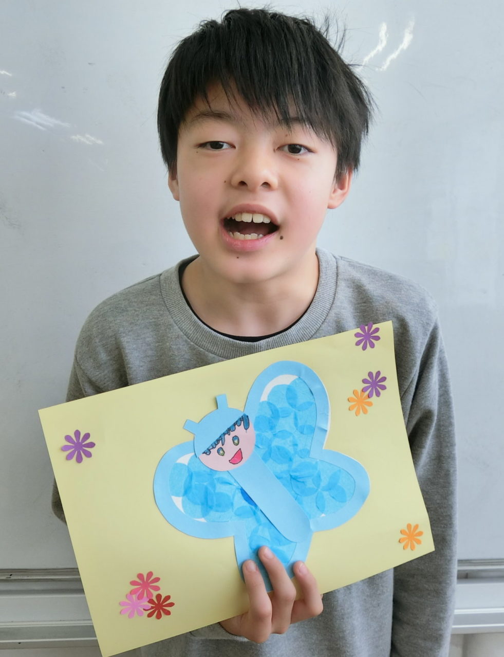 本展のアーティスト、宮田悠生(今治特別支援学校中等部1年生)は、そんな「国旗」と「嘘」を愛する少年です。幼少期から「高く売れるから」とポケモンカードの価値を見抜く視点を持つ一方、会話の中では「嘘」と「本当」が常に交錯します。